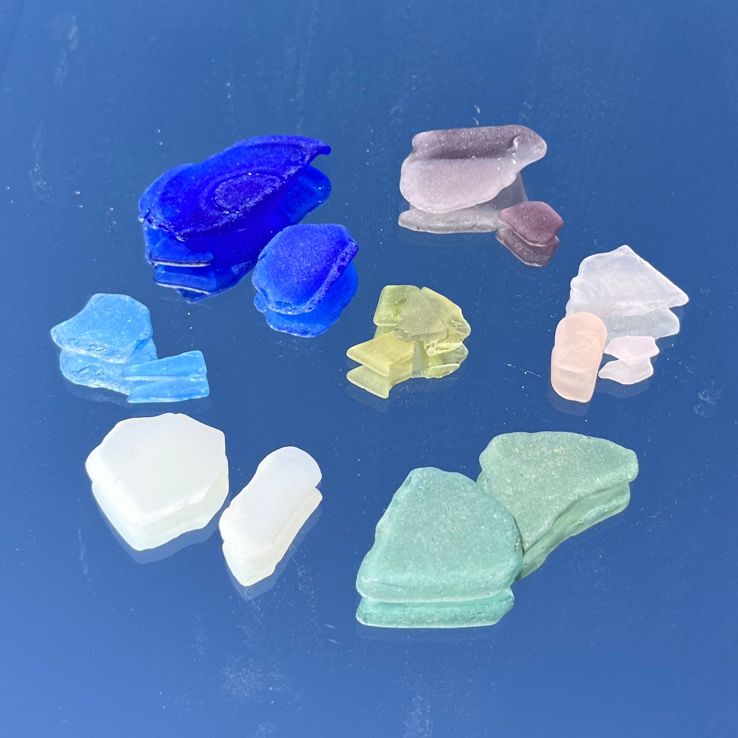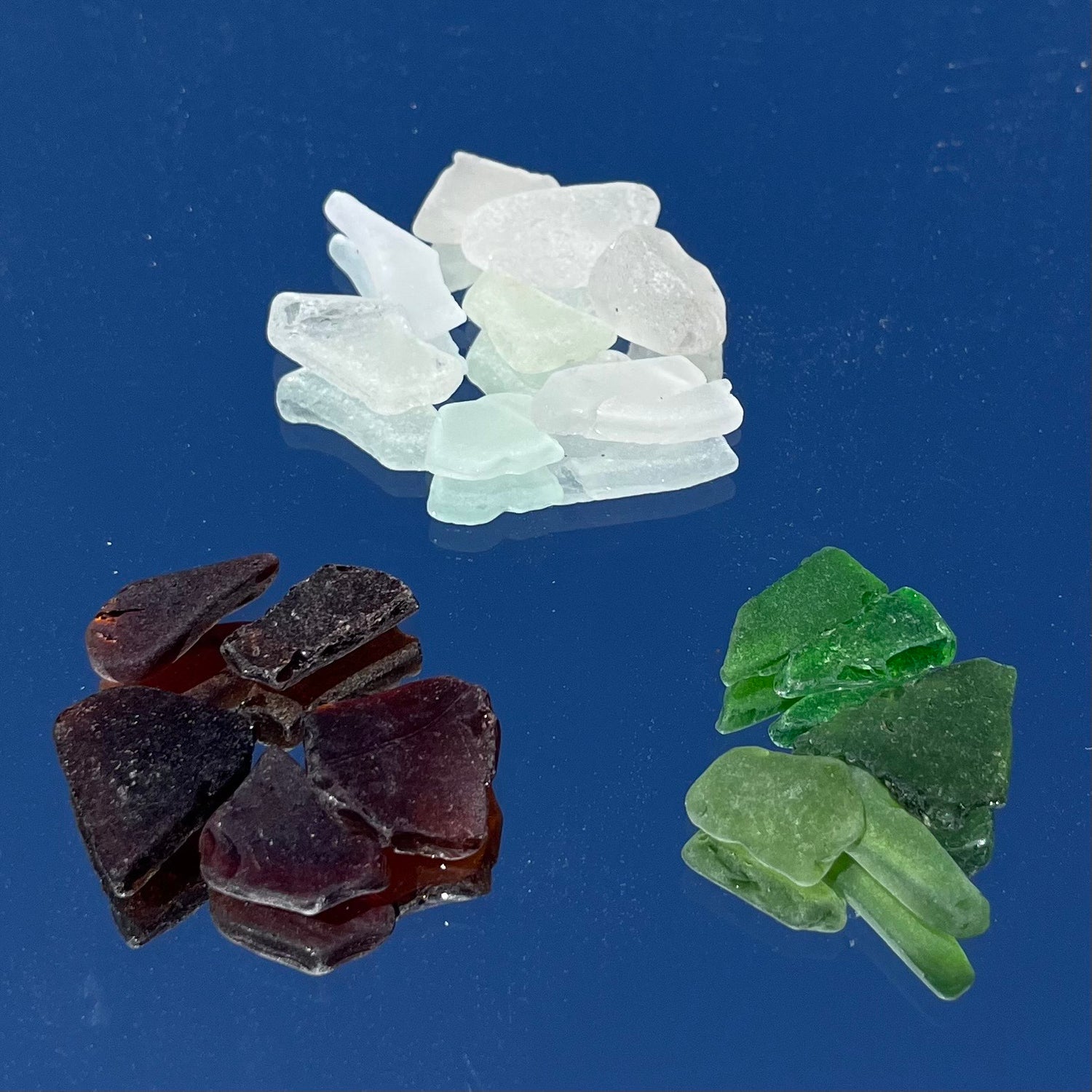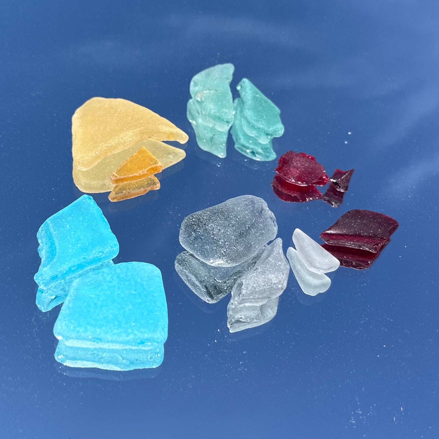 El vidrio marino es un vidrio naturalmente desgastado, liso y esmerilado que se encuentra en las playas y que se forma cuando el vidrio roto de botellas u otros elementos desechados se pule con la fuerza del agua y la arena a lo largo del tiempo.