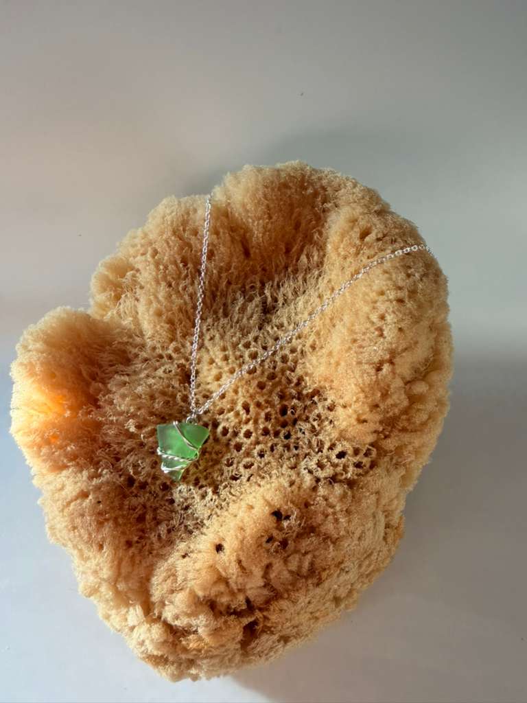 Sterling plated, Lake Michigan glass, 18" chain